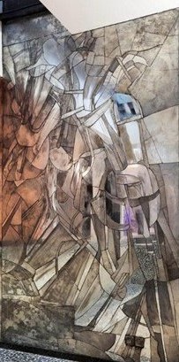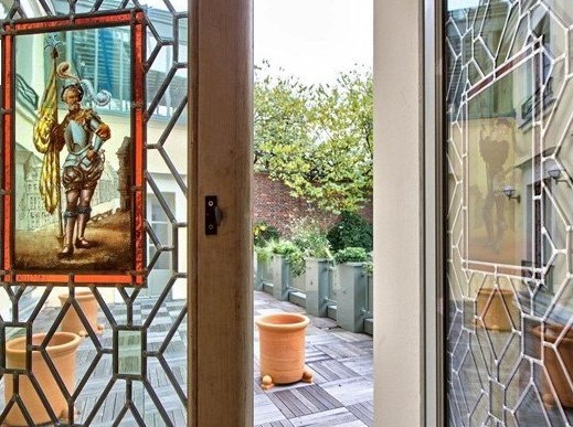 Una de las puertas al jardín trasero, adornada por unas bonitas vidrieras.