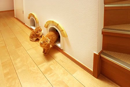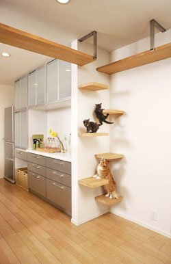 Asahi Kasei es una empresa que se dedica al diseño y construcción de casas. Una de sus últimas novedades es una especialmente diseñada para convivir con gatos, que cuenta con todos los servicios especialmente adaptados para el uso de humanos... y felinos. Se llama Plus-Nyon y fue creada por Asahi Kasei.