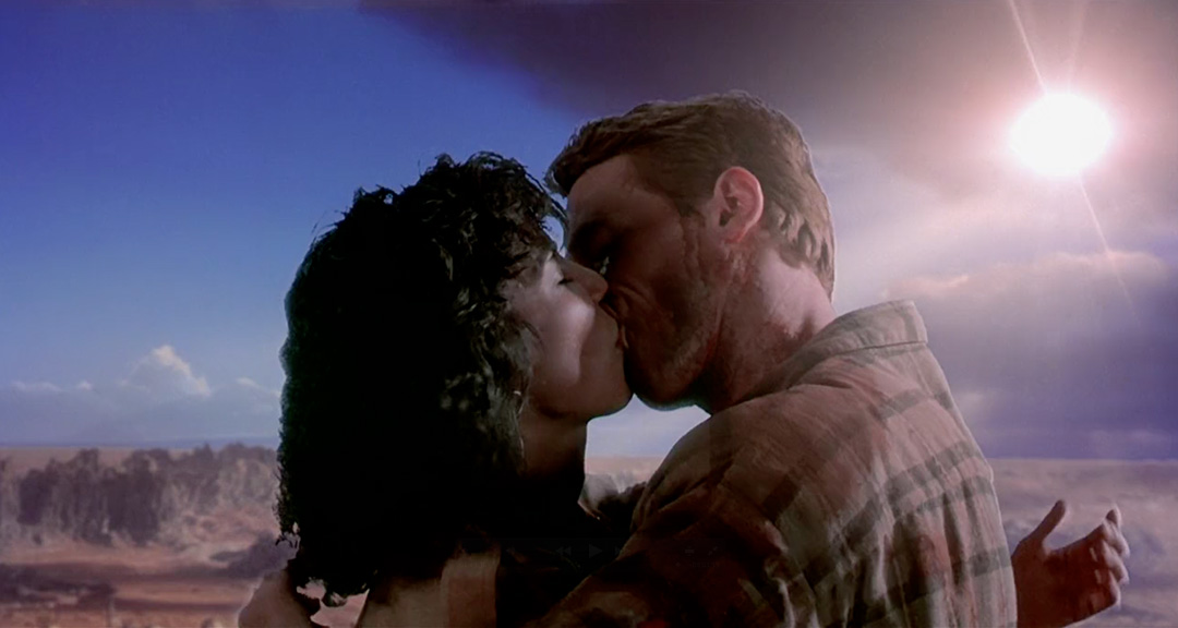 No es exactamente una película romántica, pero el de Schwarzenegger y Rachel Ticotin en el último plano de Desafío Total tiene su importancia. ¿Era todo un sueño, o realmente ocurrió lo que se contaba en la película? Quizá esa luz que llena la pantalla un segundo después conozca la respuesta.