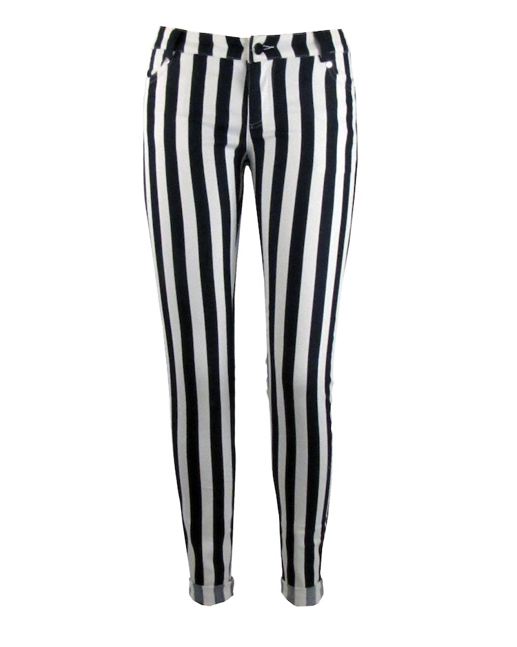 Aunque a simple vista los pantalones de rayas pueden resultar difíciles de combinar, en realidad no es así. Usar una camiseta simple, blanca o negra, hará que éstos favorezcan muchísimo. Otra posible opción es elegir un jersey básico de punto. Sin embargo, en cierto, que aunque no lo parezca, cualquier prenda que se combine con estos pantalones quedará fantástico.
