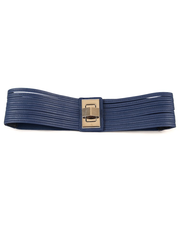 Sin salirnos de los complementos, un cinturón a juego -también en azul- puede ayudarte a ceñirlo a la cintura y sugerir alquello que no quieres mostrar. Atención al ingenioso cierre.