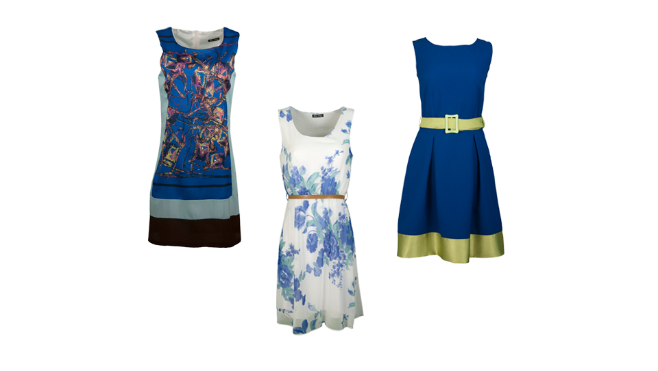 Los vestidos en tela estampados, así como los tonos azules, ya sea en liso o con pliegues, son un acierto seguro para las noches de verano.