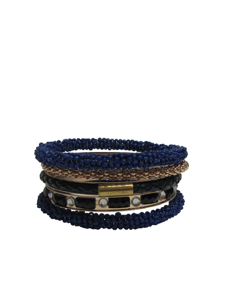 Una pulsera en el mismo tono le da el último toque. Se trata de un juego de cinco, nada menos.