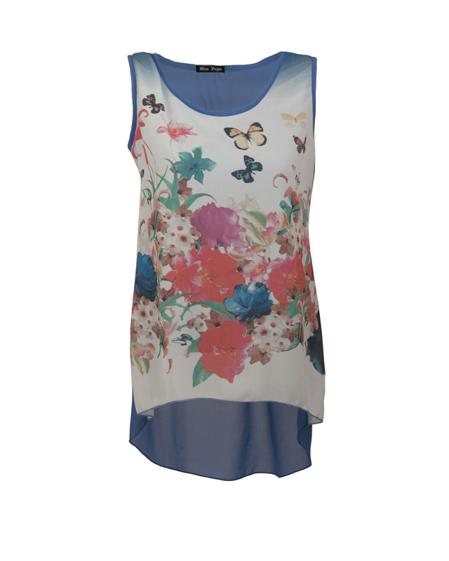 Otro diseño jovial y atrevido es el de Judy, una blusa estampada y lisa de corte muy ligero que, como lo que ofrece Miss Pepa, es muy fácil de combinar.