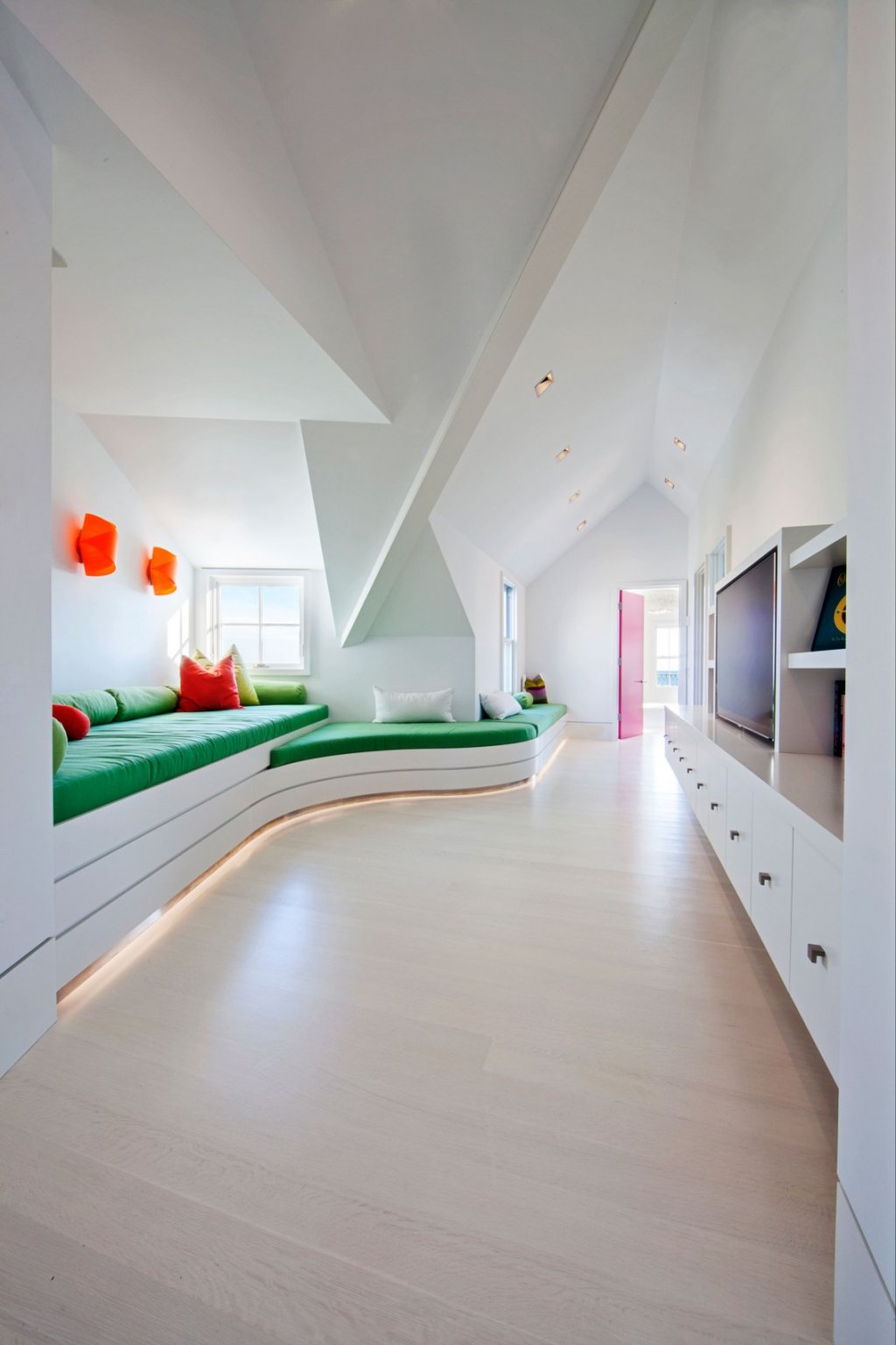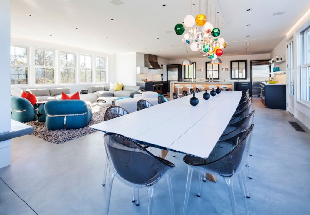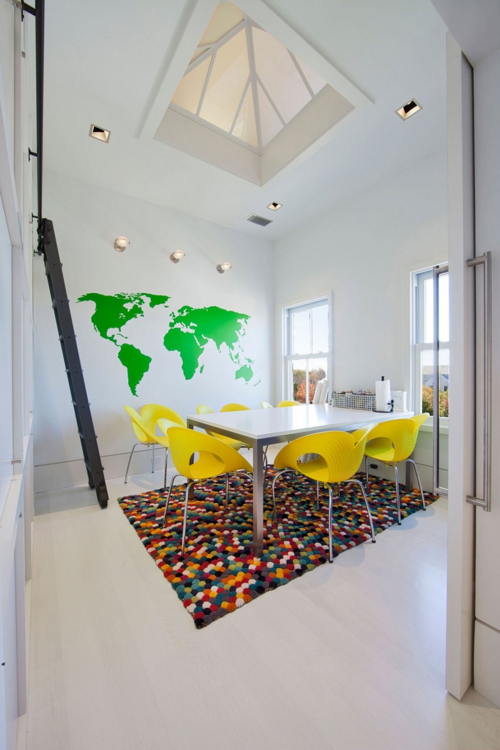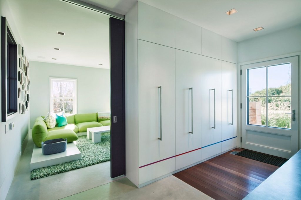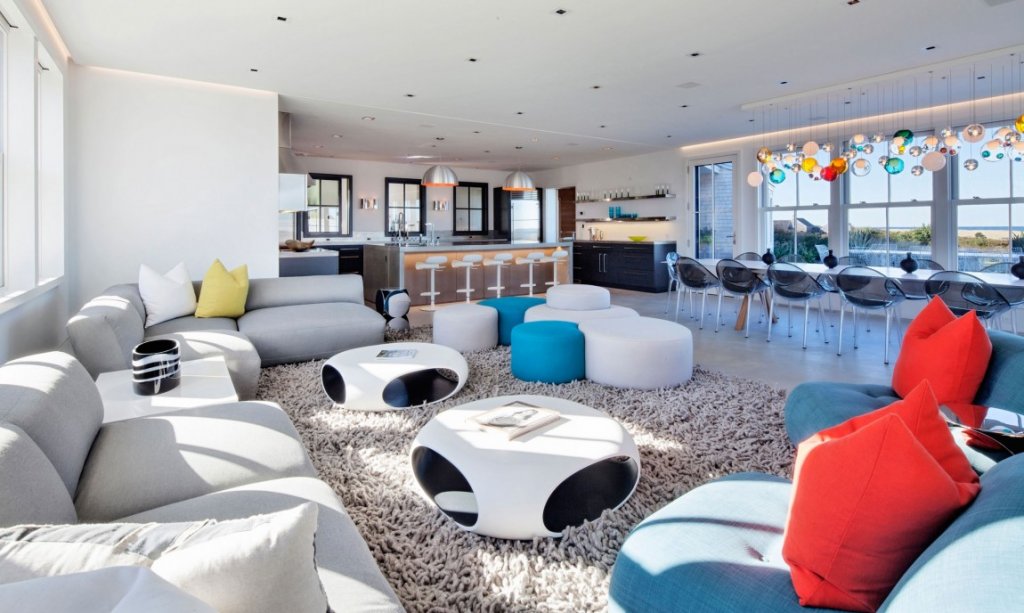 conocida como "squam residence" y construida por la constructora J. Brown Builders, el interior está decorado en estilo moderno y con llamativos y atrevidos toques de color.
