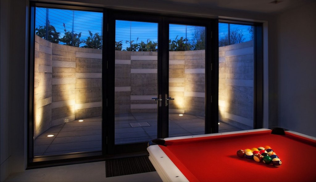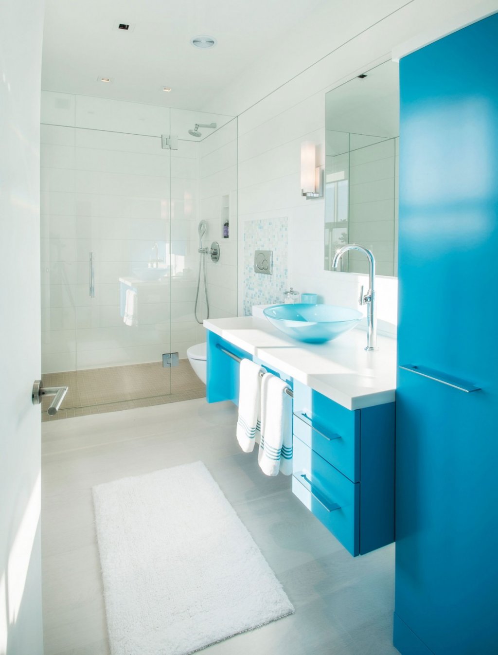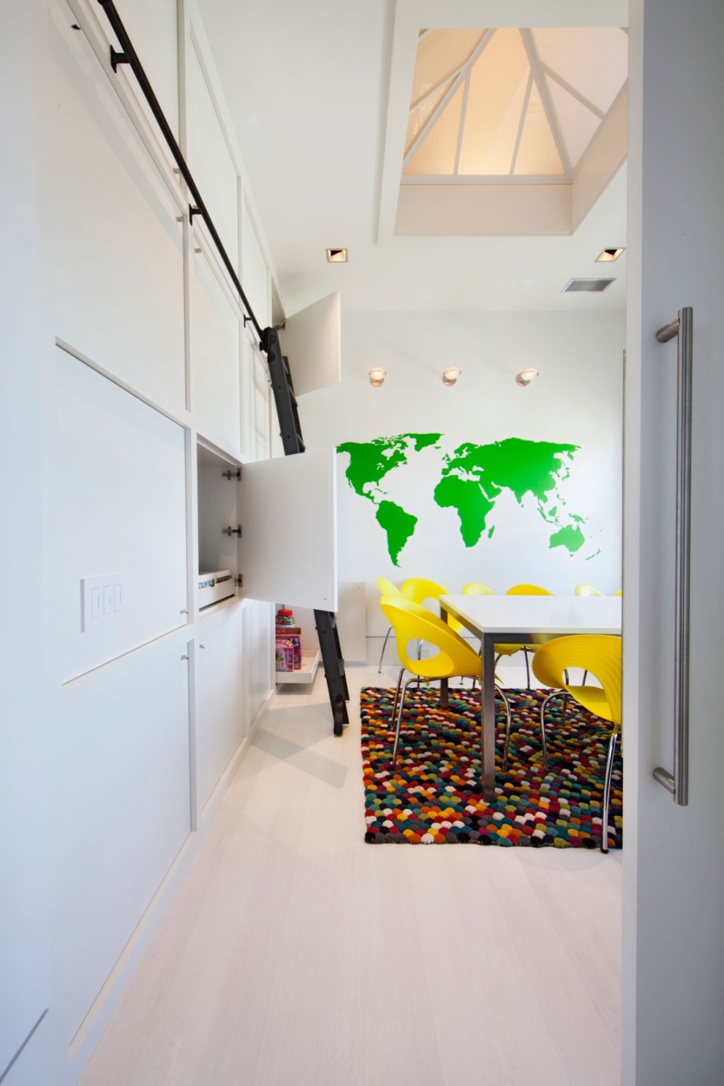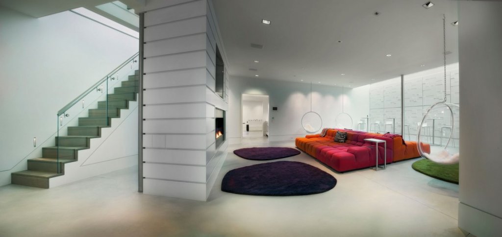 conocida como "squam residence" y construida por la constructora J. Brown Builders, el interior está decorado en estilo moderno y con llamativos y atrevidos toques de color.