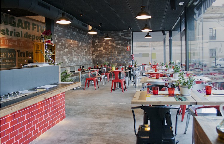 Esta pizzería italiana en pleno centro de Gavá, parece un auténtico almacén neoyorkino. Dos plantas con una decoración llamativa, en la que destaca el color rojo, y unos muebles vintage al estilo industrial.