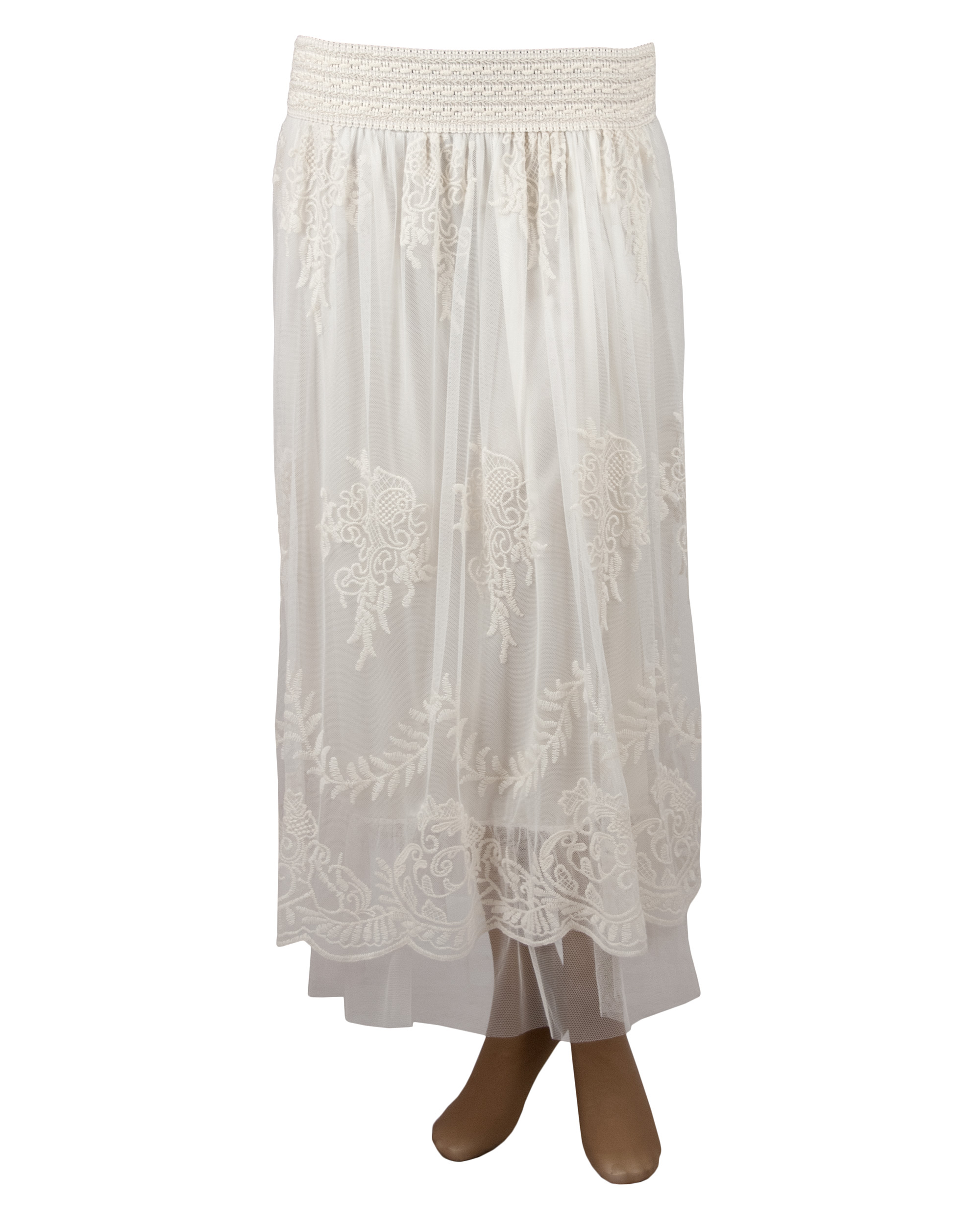 Da igual si es para campo o playa: esta falda blanca de tul bordado es ideal para las grandes ocasiones.