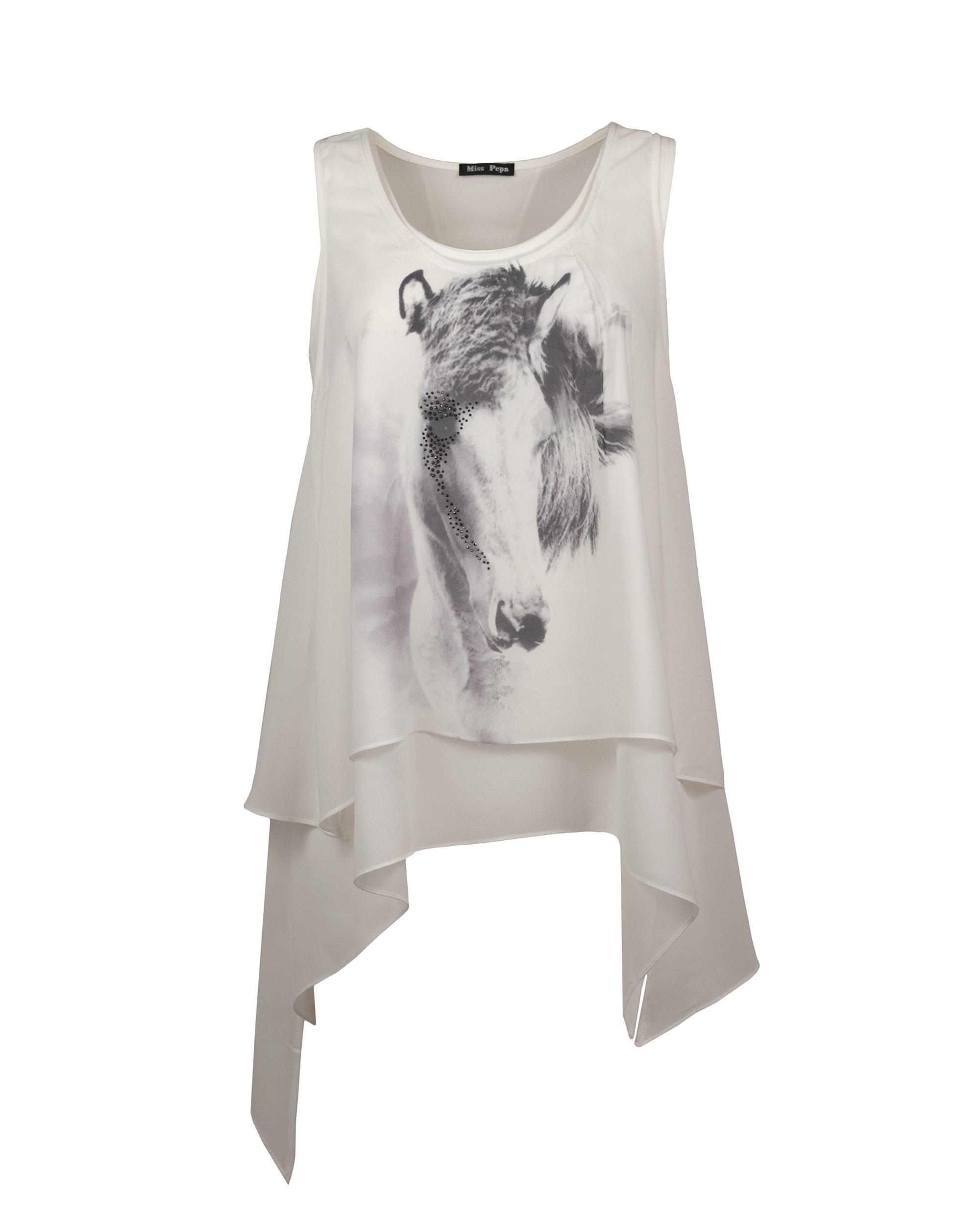 Blusa de tirantes estampada y asimétrica, ideal para playa, montaña, o un ambiente urbano... Es un modelo de Miss Pepa.