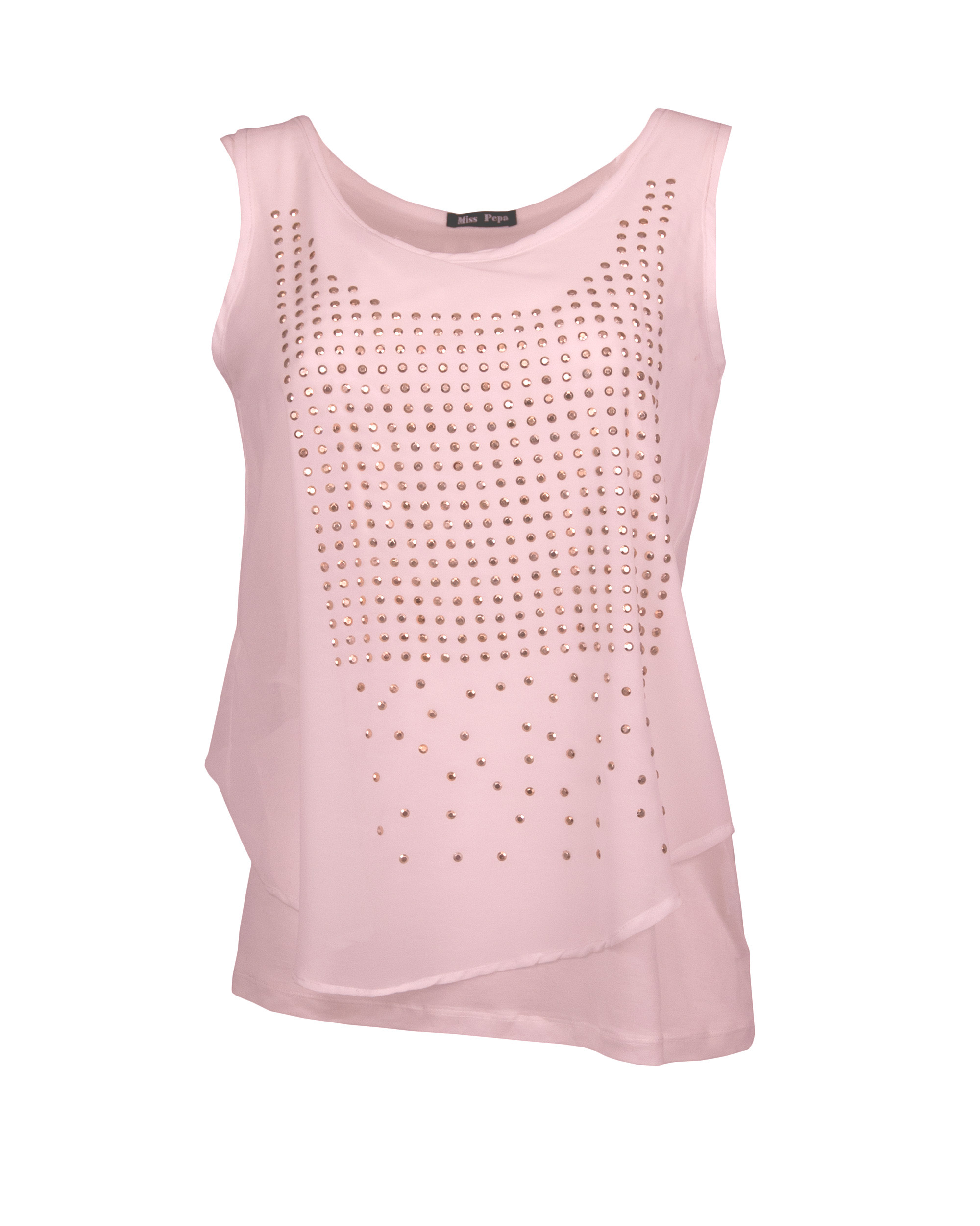 Una blusa rosa de tachuelas, de lo más original, te permite combinar con el blanco, el negro, el marrón... y darle un toque urbano.