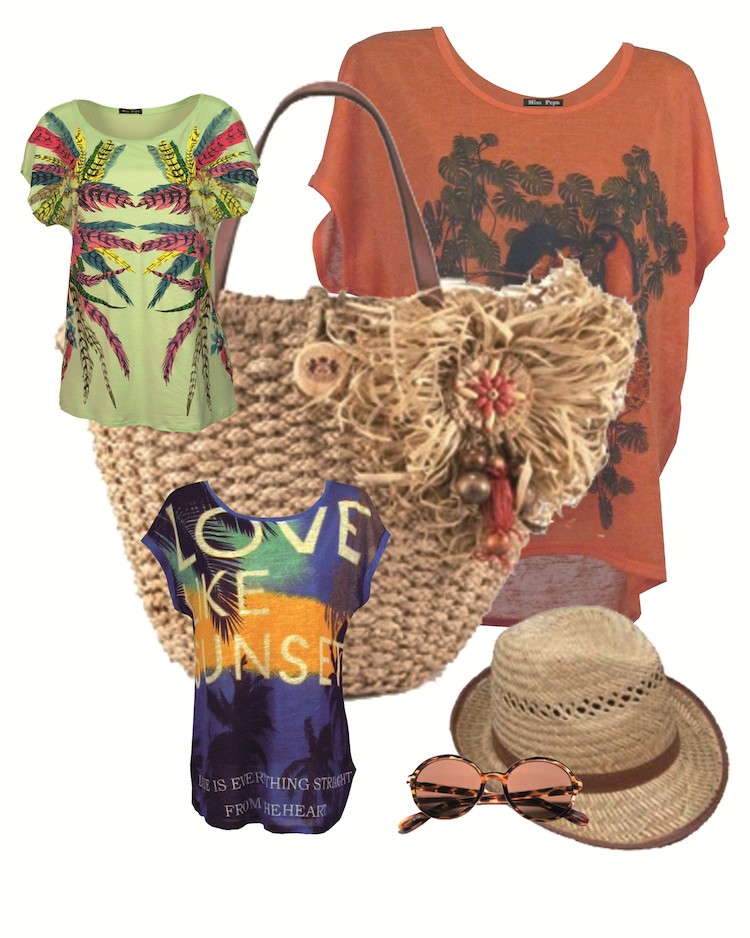 La camiseta Love es una de las soluciones esenciales. El sombrero te permite ser fashion por poco dinero, como también las imprescindibles gafas de sol.