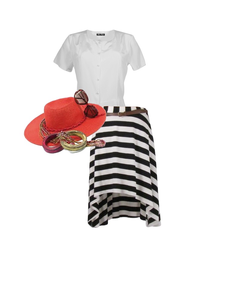 Otro ejemplo de combinación fantástica es esta blusa con falda de rayas asimétricas (llamada Karita). Todo lo refrescante y elegante que se puede ser.