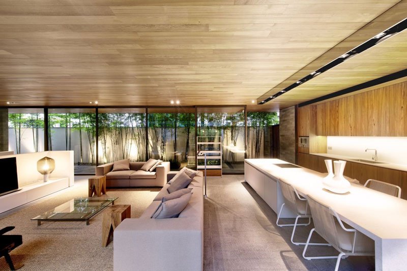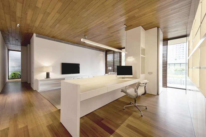 Aunque en Singapur, existe. La vivienda, rodeada de vegetación que ocultan la cercanía de otras casas, está estructurada en varios niveles decorados con frondosa vegetación.