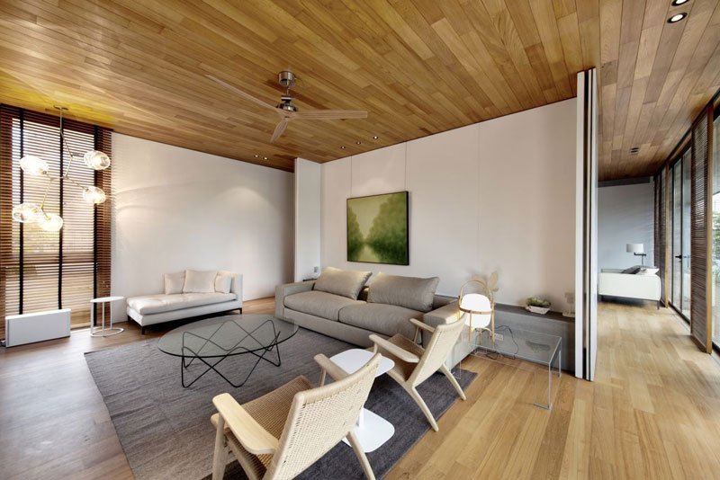 Las líneas y espacios se superponen en todas las estancias, al igual que en el exterior.
