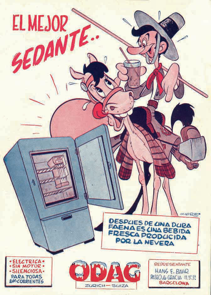 Anuncio de neveras Odag de 1948 dibujado por José Luis Moro en la revista infantil "Dumbo". En aquella época, los hermanos Moro comenzaban a realizar anuncios de animación en el comedor de su casa. (Ver anuncios "Cha-Cha-Cah" y “Viva mejor” de Estudios Moro)