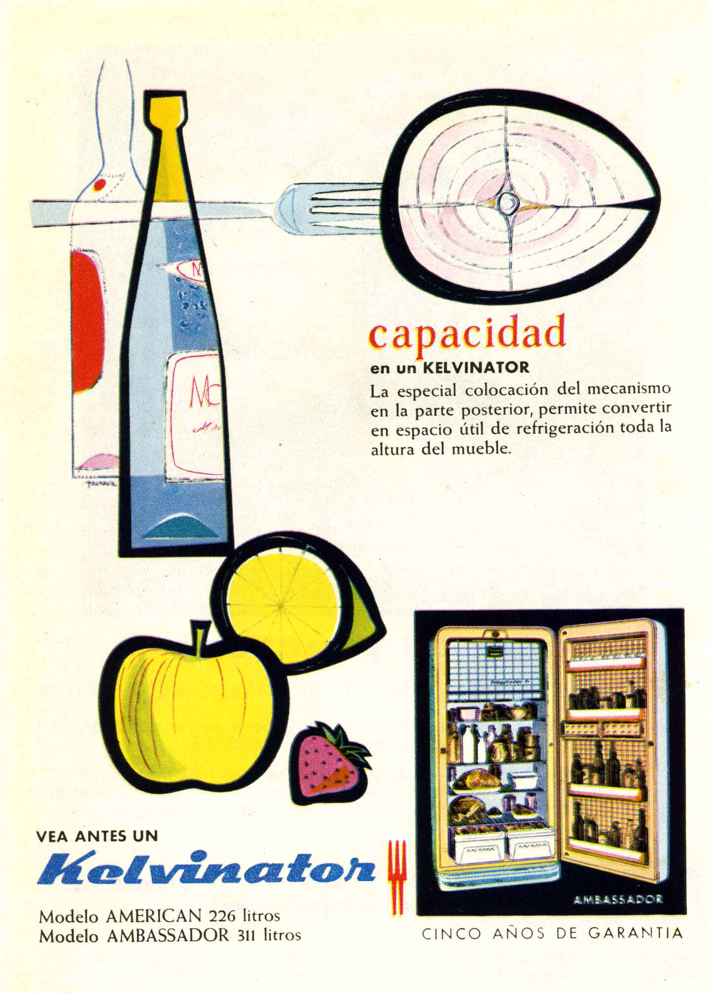 Las neveras Kelvinator eran también norteamericanas y competían en precio con Westinghouse, con modelos muy similares. (Ver anuncios "Cha-Cha-Cah" y “Viva mejor” de Estudios Moro)