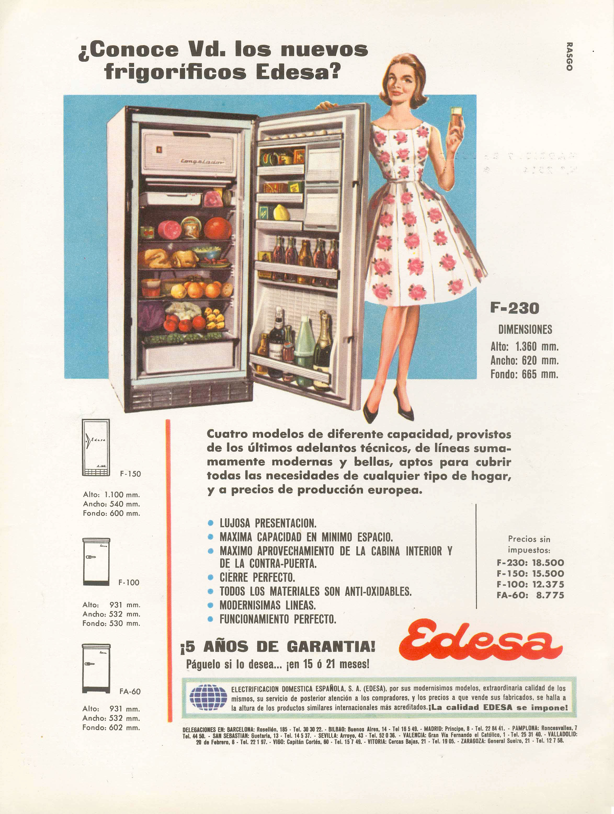 Realmente la gama de frigoríricos de Edesa era impresionante. Garantizaba que cada casa podía disponer de un supermercado en casa gracias a la supercapacidad de sus neveras. (Ver anuncios "Cha-Cha-Cah" y “Viva mejor” de Estudios Moro)