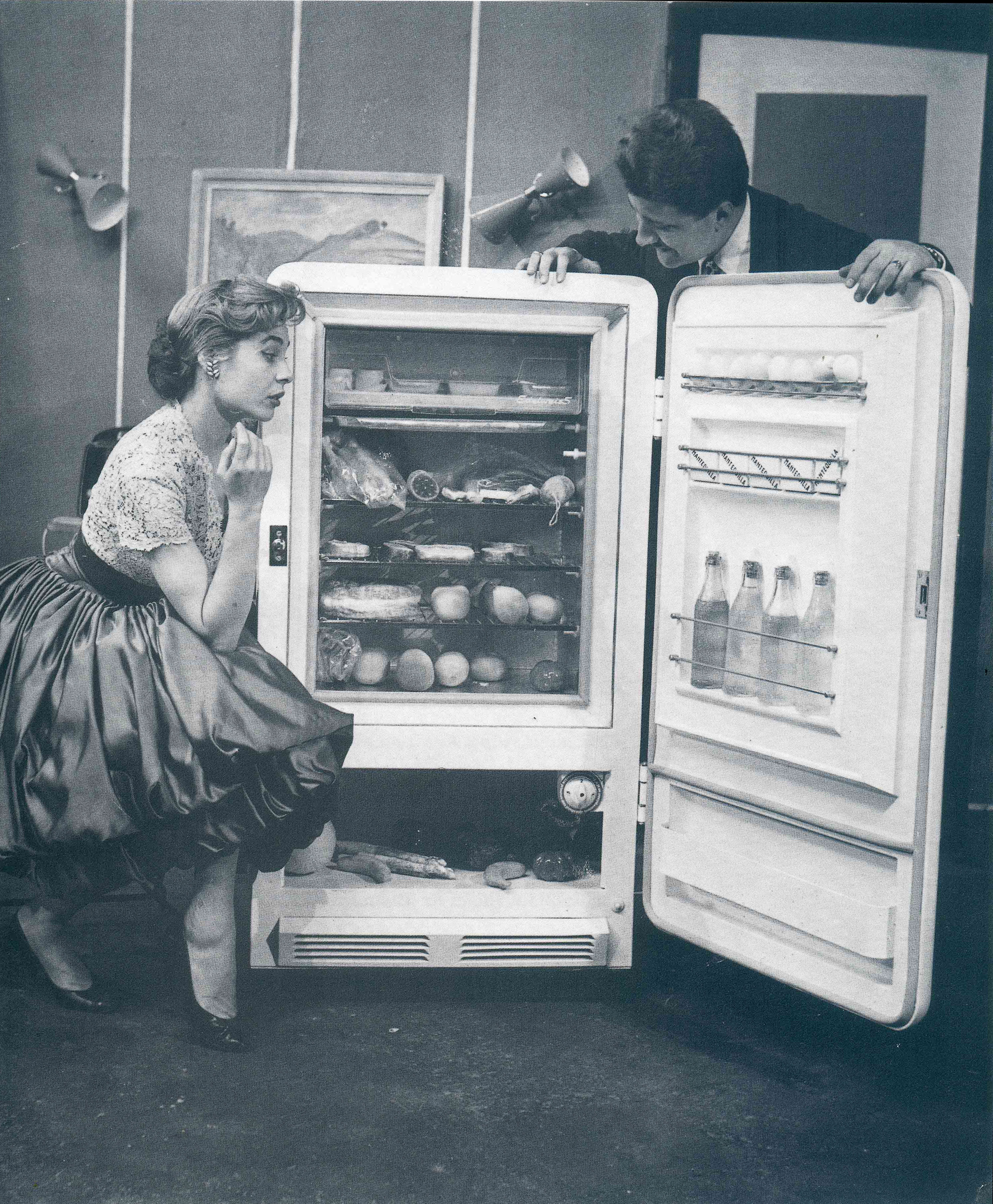 Esta nevera de 1958 funcionaba con electricidad, a gas, gas butano y petróleo. No era tan moderna como las Westinghouse, pero podía hacer la felicidad de una pareja de recién casados. (Ver anuncios "Cha-Cha-Cah" y “Viva mejor” de Estudios Moro)