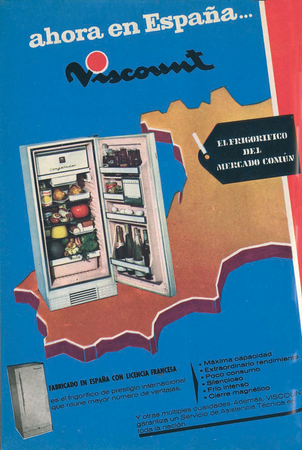 También los franceses trataron de introducirse en el mercado de los electrodomésticos con su acreditada firma Moulinex, pero Viscount no fue una marca muy popular, con la competencia que ya había en 1964. (Ver anuncios "Cha-Cha-Cah" y “Viva mejor” de Estudios Moro)