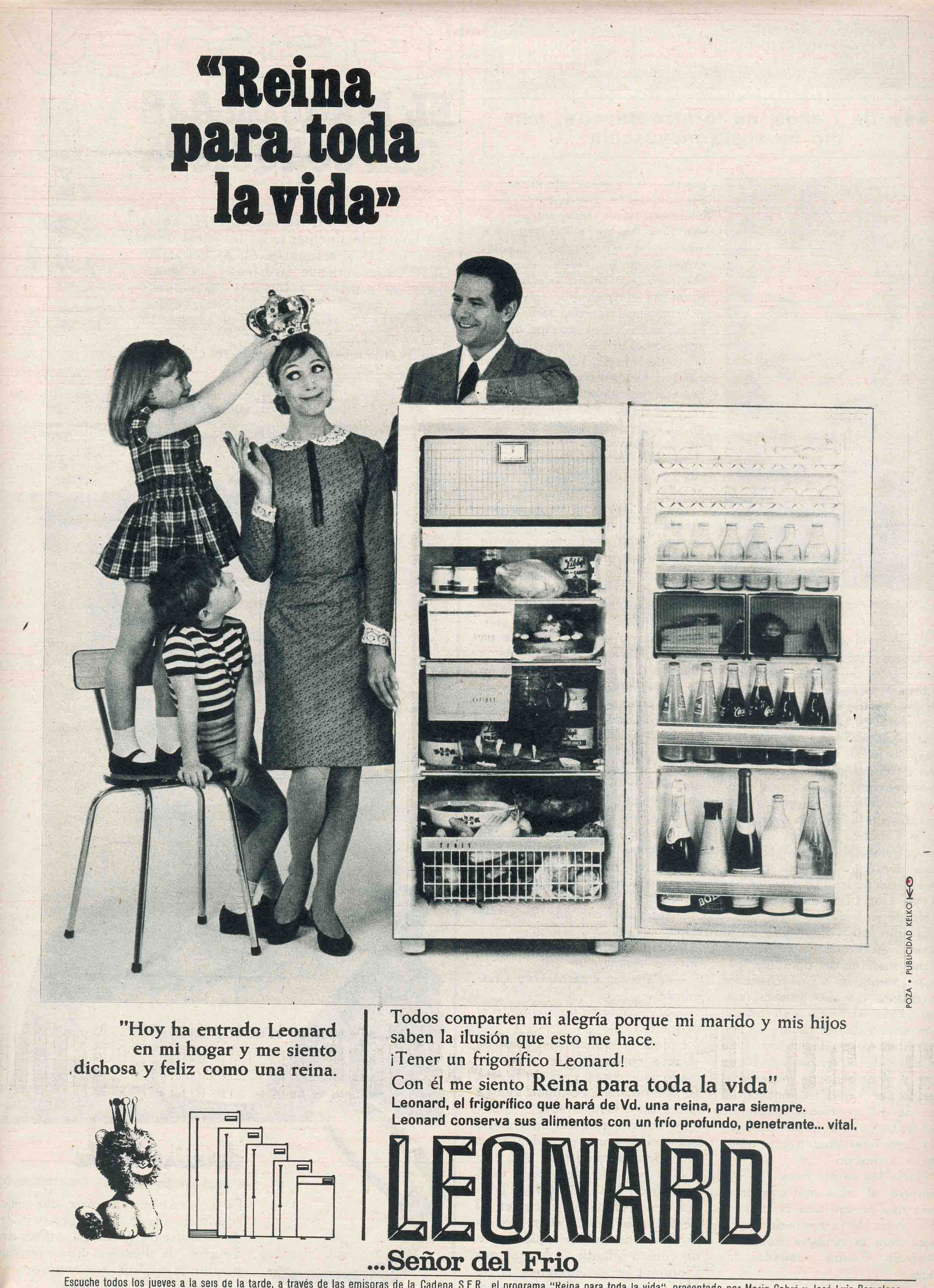 Esta ama de casa soñaba con un frigorífico Leonar y su marido se lo ha comprado. Desde ahora será reino para toda la vida. (Ver anuncios "Cha-Cha-Cah" y "Viva mejor" de Estudios Moro)