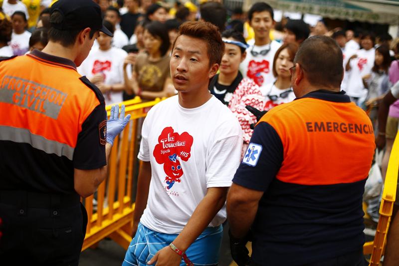 Como si de una estampa invernal se tratase, una jóven se lanza al suelo y hace el conocido ángel, en este caso en tomate. Hasta ahora, únicamente dos personas han precisado asistencia y en ambos casos por causas leves.