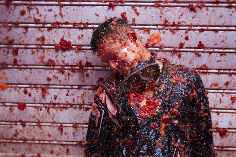 Entrada ya la fiesta el simple tomate queda apartado por grandes cubos rellenos de los restos que van quedando. Para más de uno, una ducha de agua caliente será lo mejor del día.