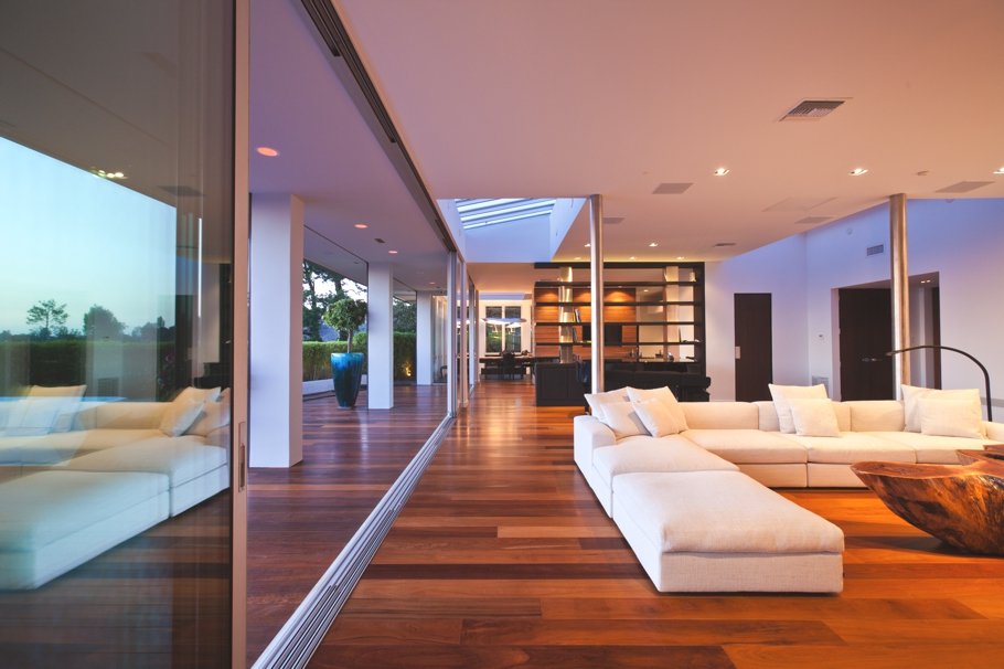 En esta imagen podemos apreciar mejor que en ninguna otra la comunicación entre el interior y exterior, así como las grandes superficies acristaladas que permiten pasar la luz.