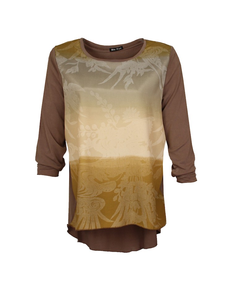 Las blusas también pueden llevar todo tipo de estampados atractivos. Esta es una absoluta novedad, tiene un corte asimétrico y parece de lo más confortable.