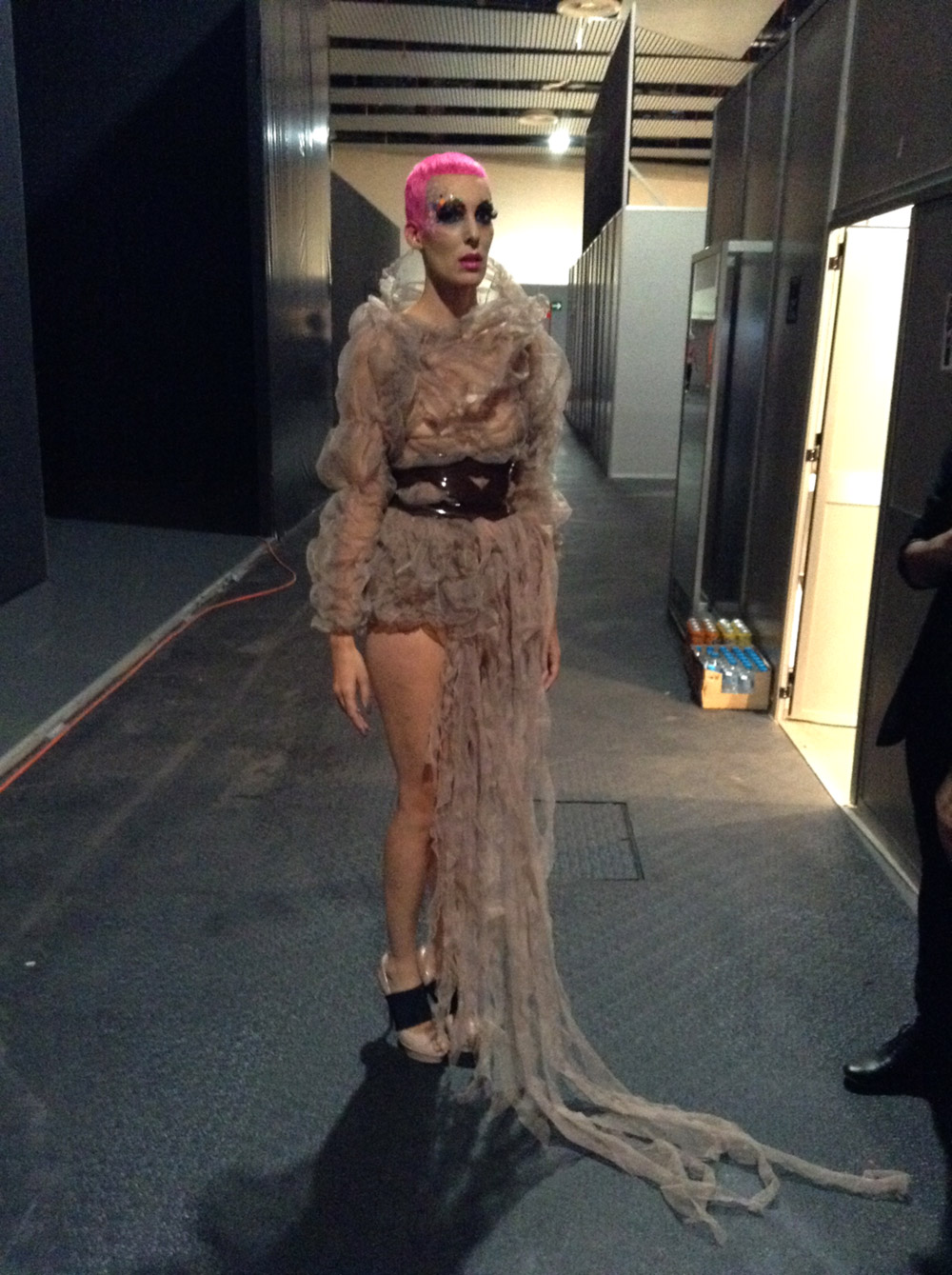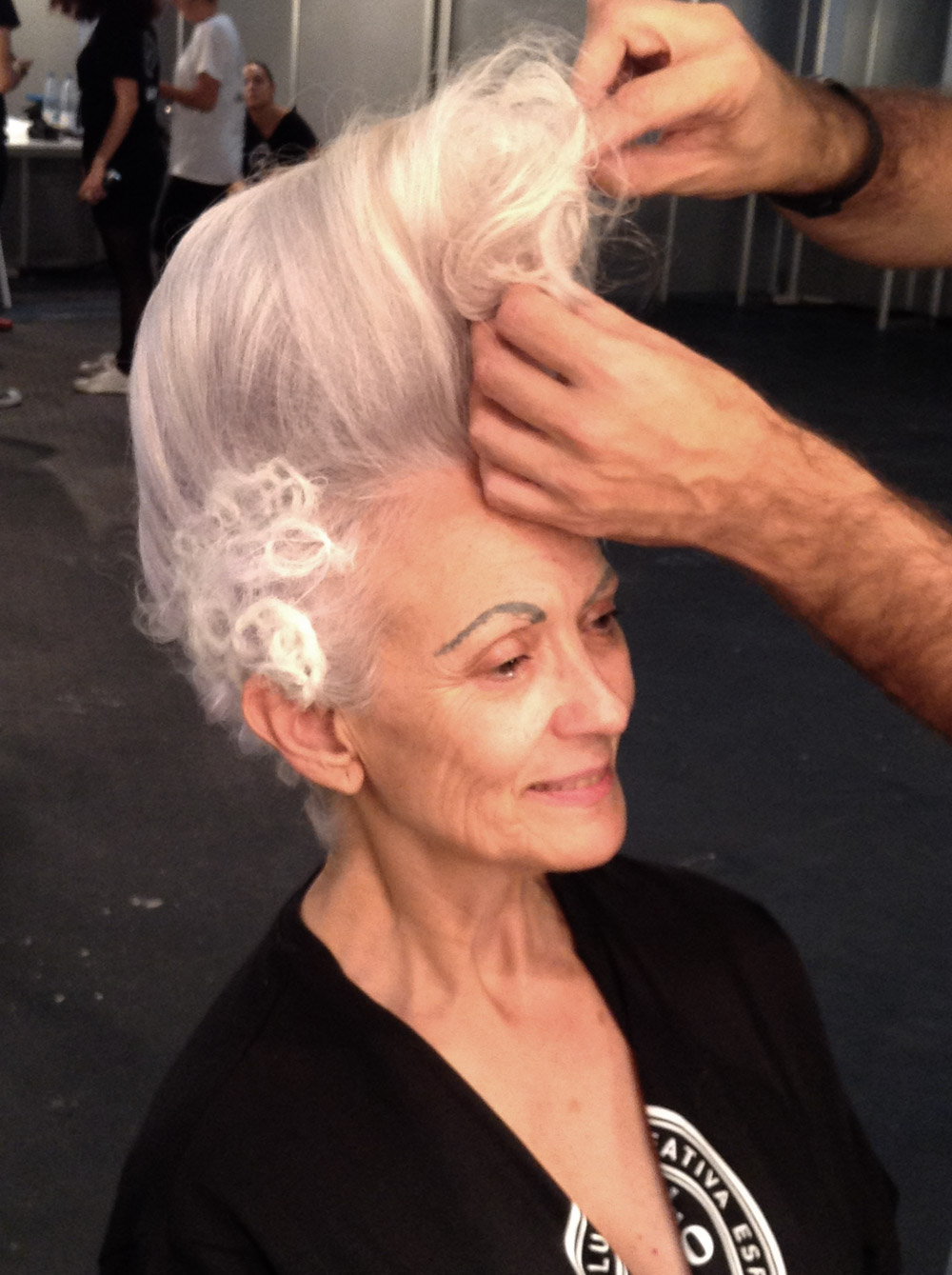 Otra imagen del backstage de la pasarela y el concurso, con un trabajo de Antonio Calvo.