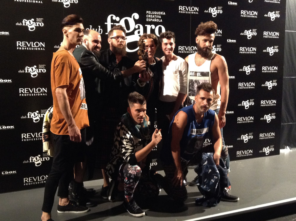 El Club Fígaro es un proyecto encabezado por un grupo de importantes profesionales de la peluquería española, como Antonio Calvo (en el centro de la imagen). El nombre se debe al barbero de ficción más famoso de Occidente. Atención a la colección ganadora del galardón de Vanguardia, en la fotografía.