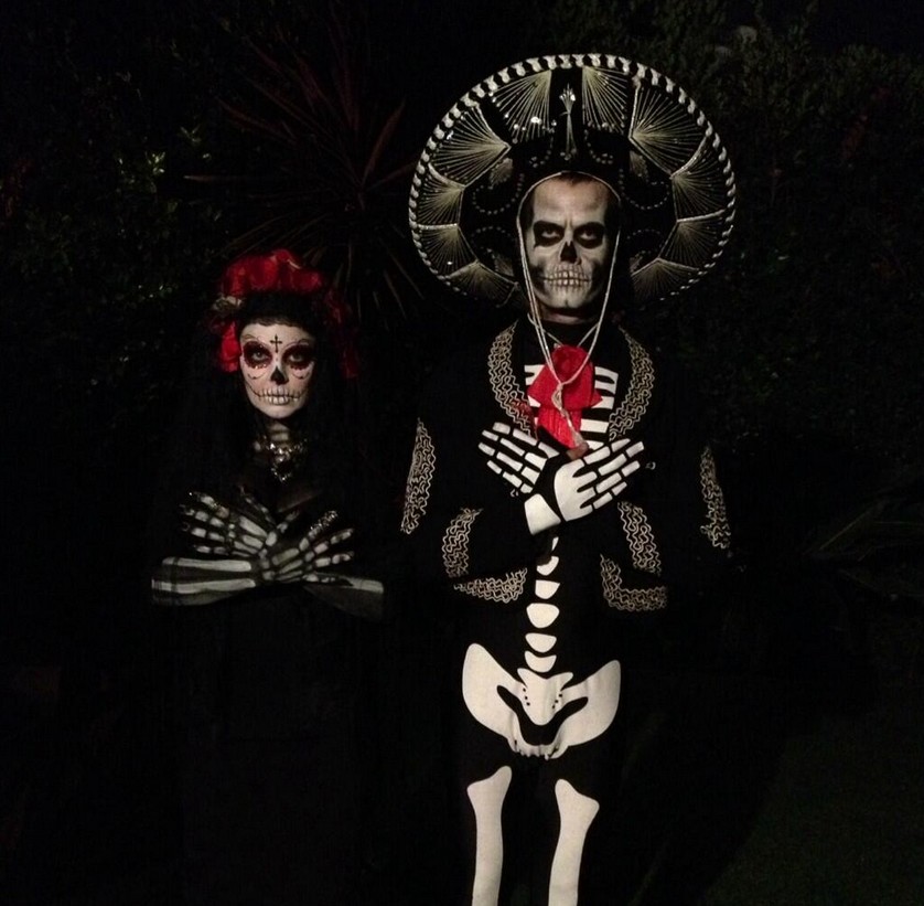 Esta pareja se merecen el galardón a la caracterización, ya que con este disfraz de esqueletos están irreconocibles.