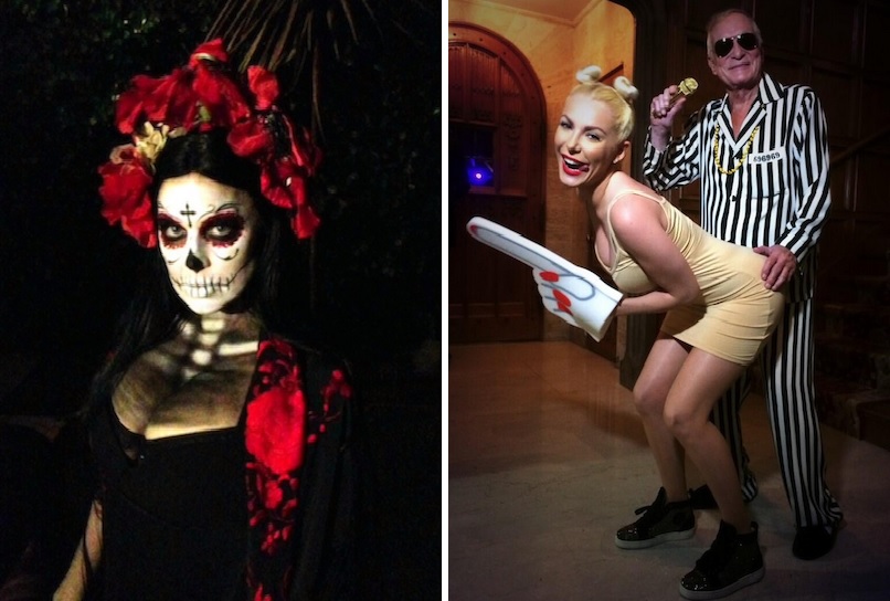 Sin ninguna duda, uno de los disfraces más originales y divertidos es el de Hugh Hefner y su esposa Crystal, que se caracterizaron de Miley Cyrus y Robin Thicke en la actuación de los premios MTV.