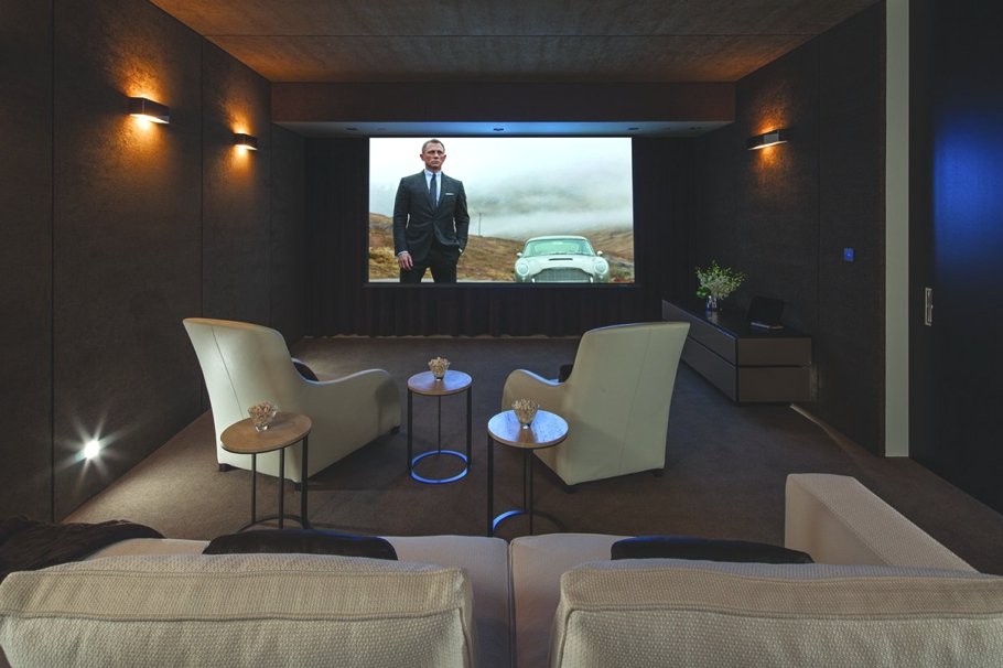 La villa cuenta con una bodega, con unas escaleras de madera y en voladizo. El diseño en varios pisos se ve desde el exterior gracias a las amplias superficies acristaladas.