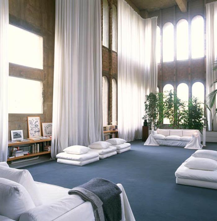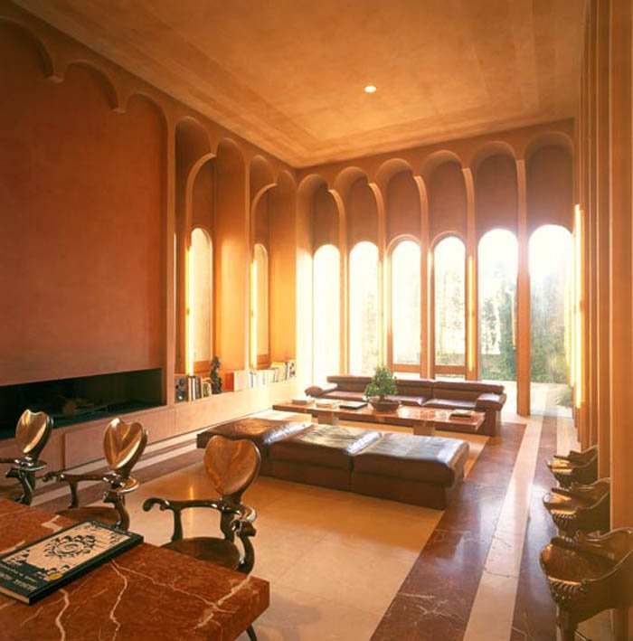 Una de las salas -de gran altura- de la residencia privada del arquitecto.