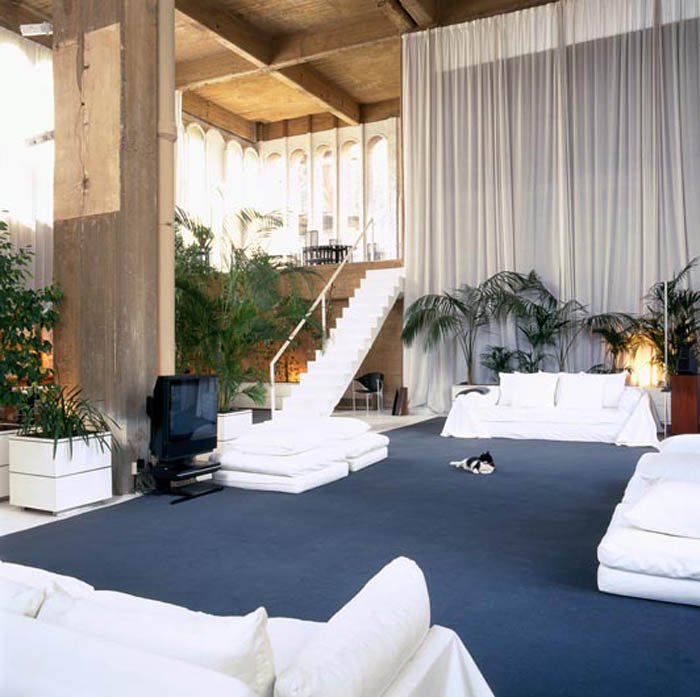 El entorno industrial transformado en vivienda privada y de lujo, donde ni siquiera falta un piano.