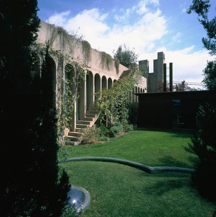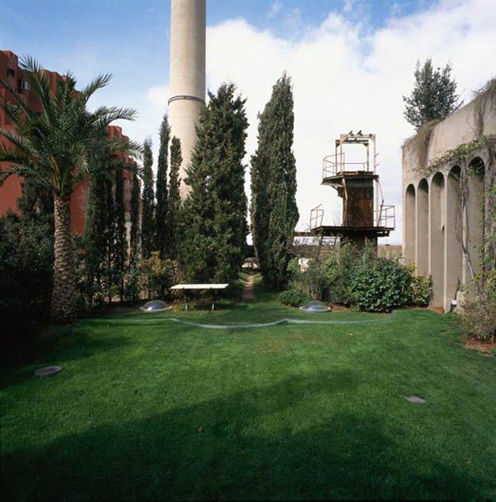 La casa está rodeada de grandes jardines. Bofill quiso dejar espacio desde el principio para un jardín de eucaliptos, olivos, cipreses y palmeras.