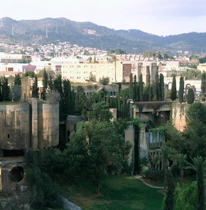 Lla fábrica", que es como se conoce en Barcelona a la construcción, está rodeada de exuberantes jardines y tiene unas excelentes vistas a la ciudad.