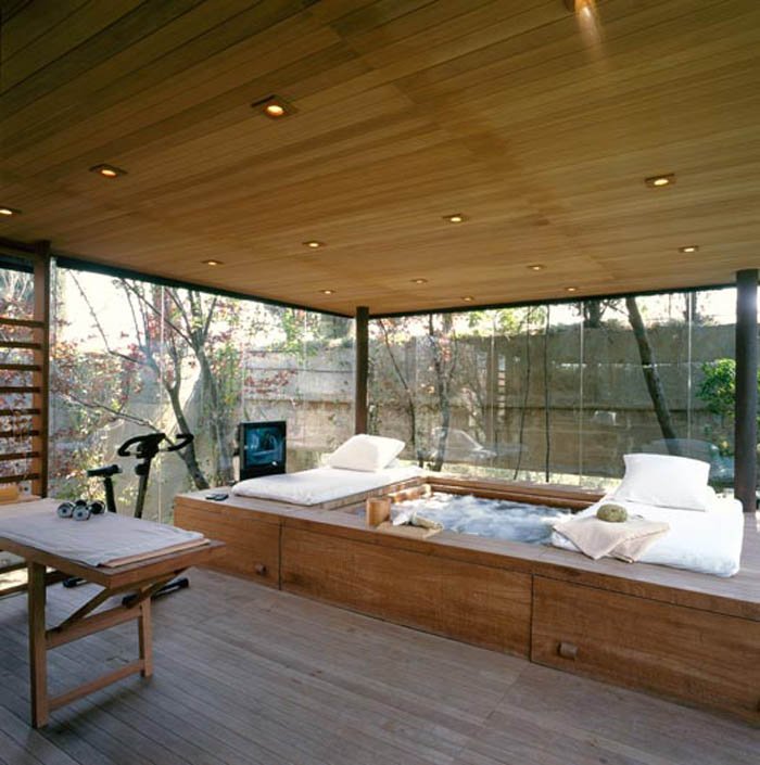 La casa tiene un gimnasio e incluso jacuzzi, con una amplia superficie acristalada.