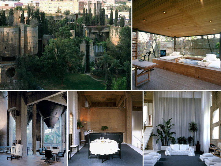 La fábrica de cemento, ubicada a las afueras de Barcelona, tenía una superficie total de 3.100 m2, y en 1973 estaba ya en desuso. Bofill cayó rendido ante el edificio.