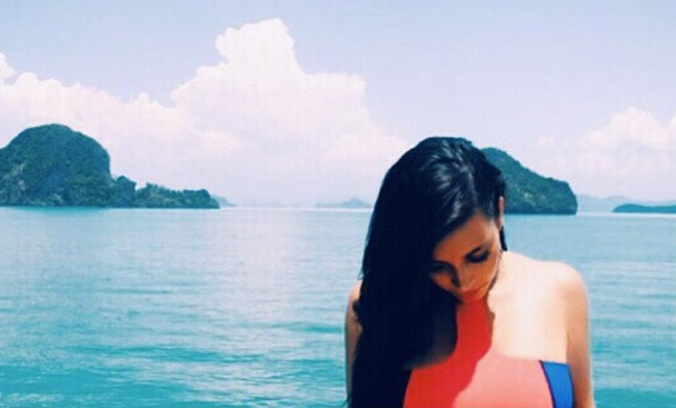 La protagonista del reality Keeping up with the Kardashians, famosa por sus curvas y su matrimonio con el rapero Kanye West, está en Tailandia debido a compromisos publicitarios.