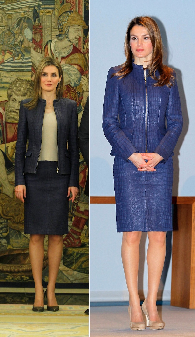 Letizia Ortiz escogió este traje para atender unas audiencias en el Palacio de la Zarzuela el pasado 14 de marzo de 2014 y para la entrega de los premios DISCAPNET de la Fundación ONCE el 11 de marzo de 2013.
