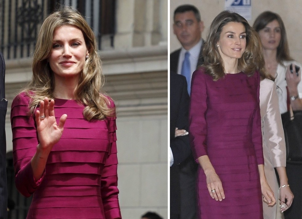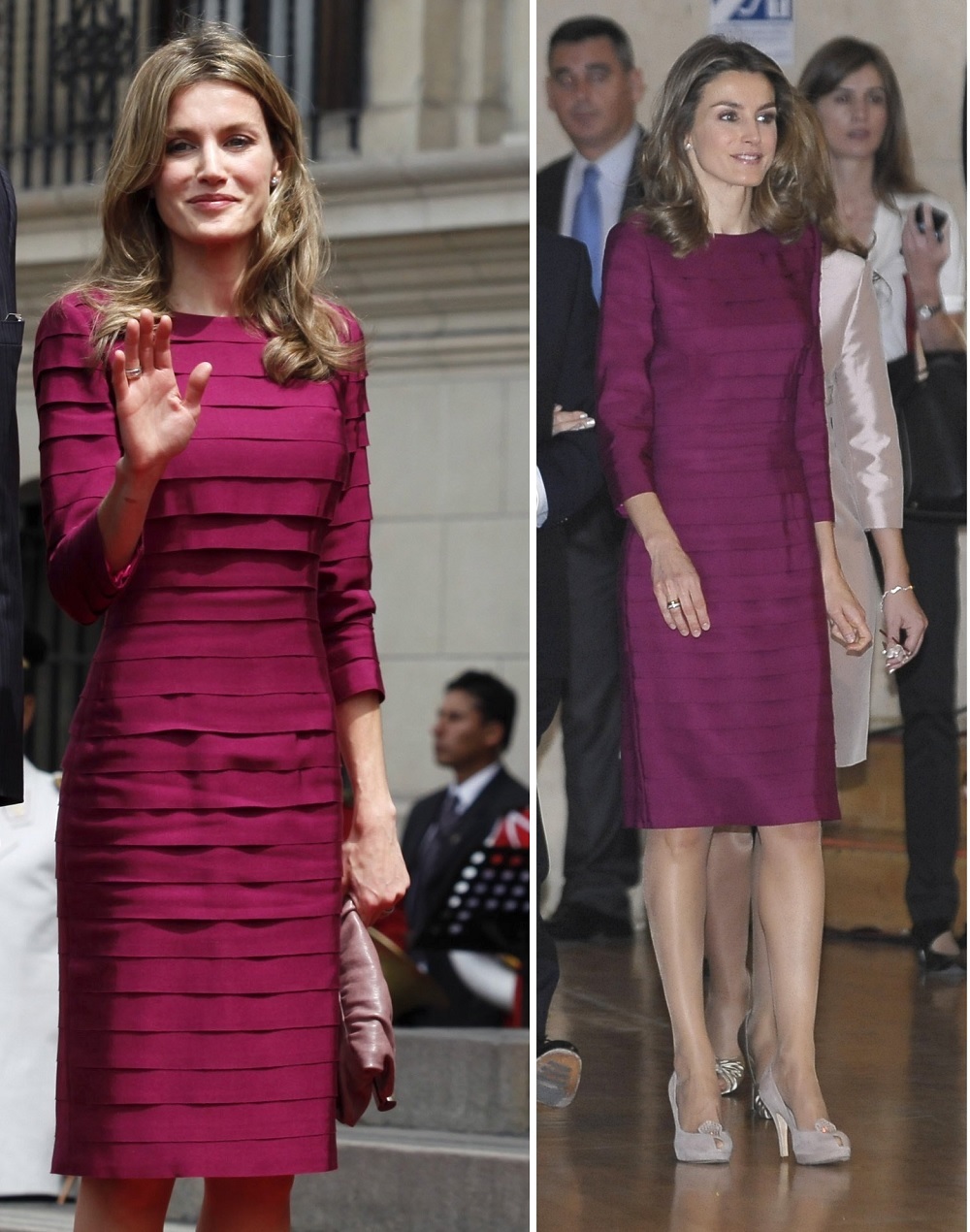 La primera vez que Letizia Ortiz lució este vestido granate fue en el 2010, en un viaje oficial a Lima.