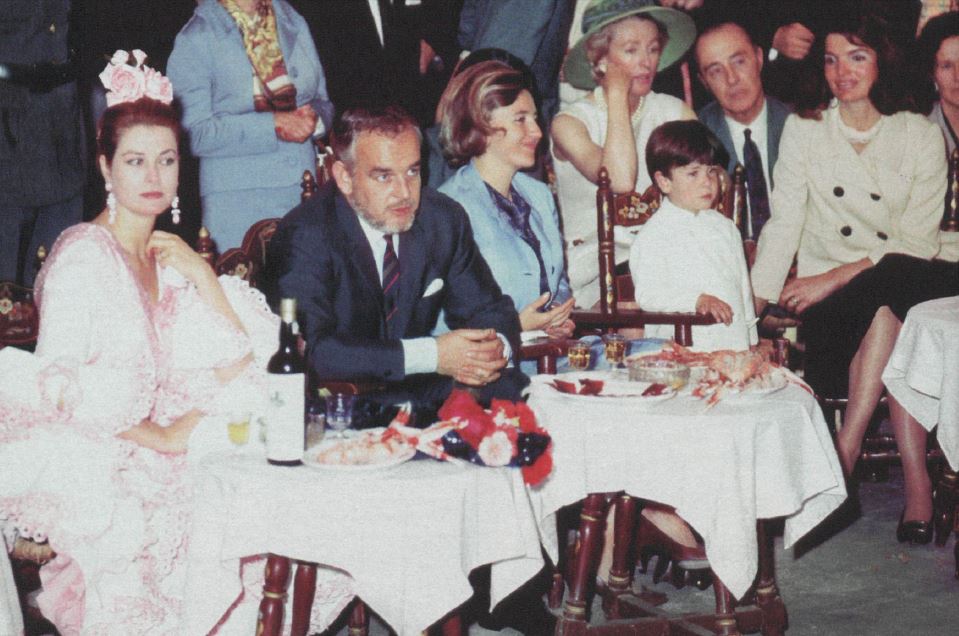 Jackie es lo más cercano a la realeza que tienen los norteamericanos. Por no hablar de Grace Kelly, ya entonces princesa de Mónaco. La conjunción de estas celebridades fue un hito en la Feria. El príncipe Rainiero observa.