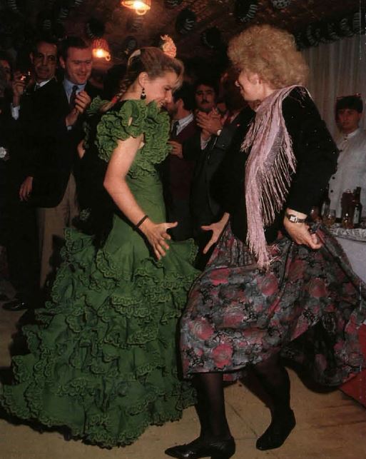 Finales de los años 80 la Duquesa de Alba también prefería adaptar el vestuario de calle, mientras que su hija Eugenia mantenía la tradición.
