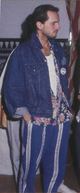 Difícil look de holguras, estampados y tela vaquera, aunque el que es guapo, es guapo. Supongo que fue una manera de marcar distancia estilística con un padre que reinó en la Feria como uno de los sex symbols patrios