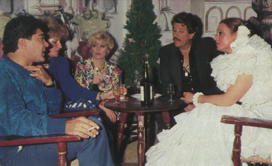 Estamos en 1980. Un año antes, Carmina Ordoñez y Paquirri se habían separado formalmente. Aquí charlan civilizadamente ante la mirada de Antonio Arribas, entonces novio de Carmina. Pero la tensión continúa en la próxima imagen…