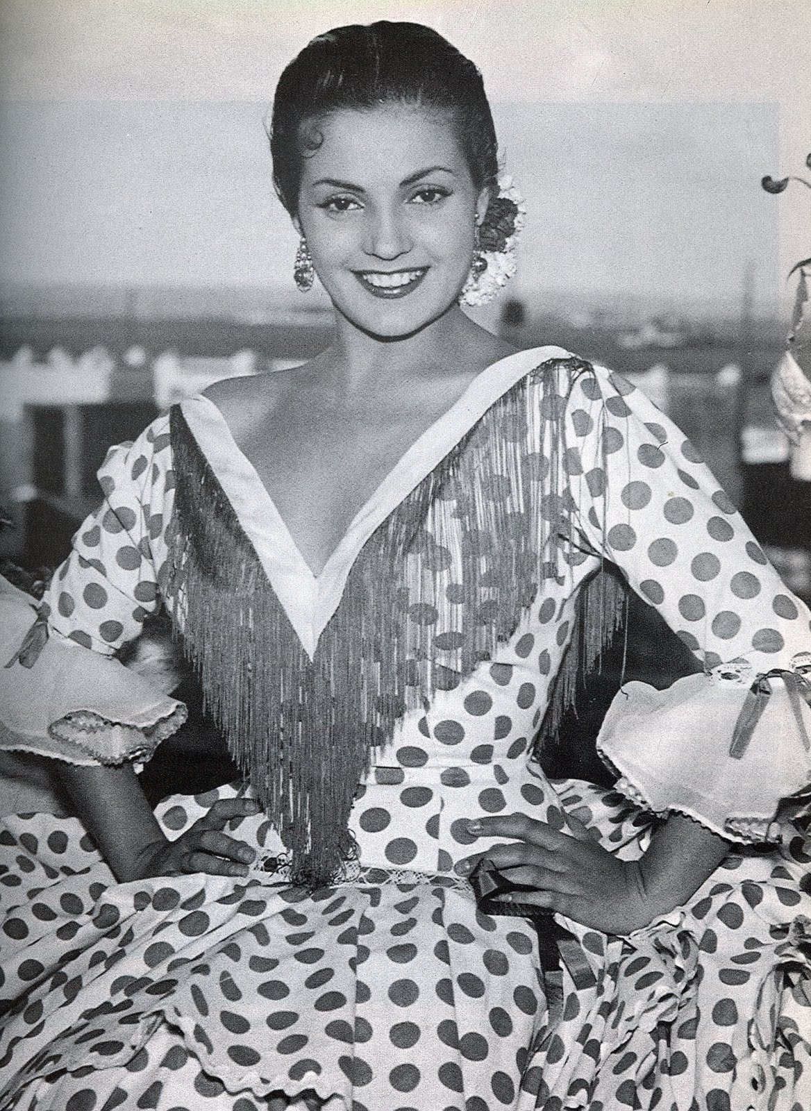 En 1958 se paseaba iluminada por las luces de la feria. Ninguna concesión folclórica, melena cardada, jersey de lana demasiado escotado y entubada hasta el desmayo. La imagen de la modernidad.