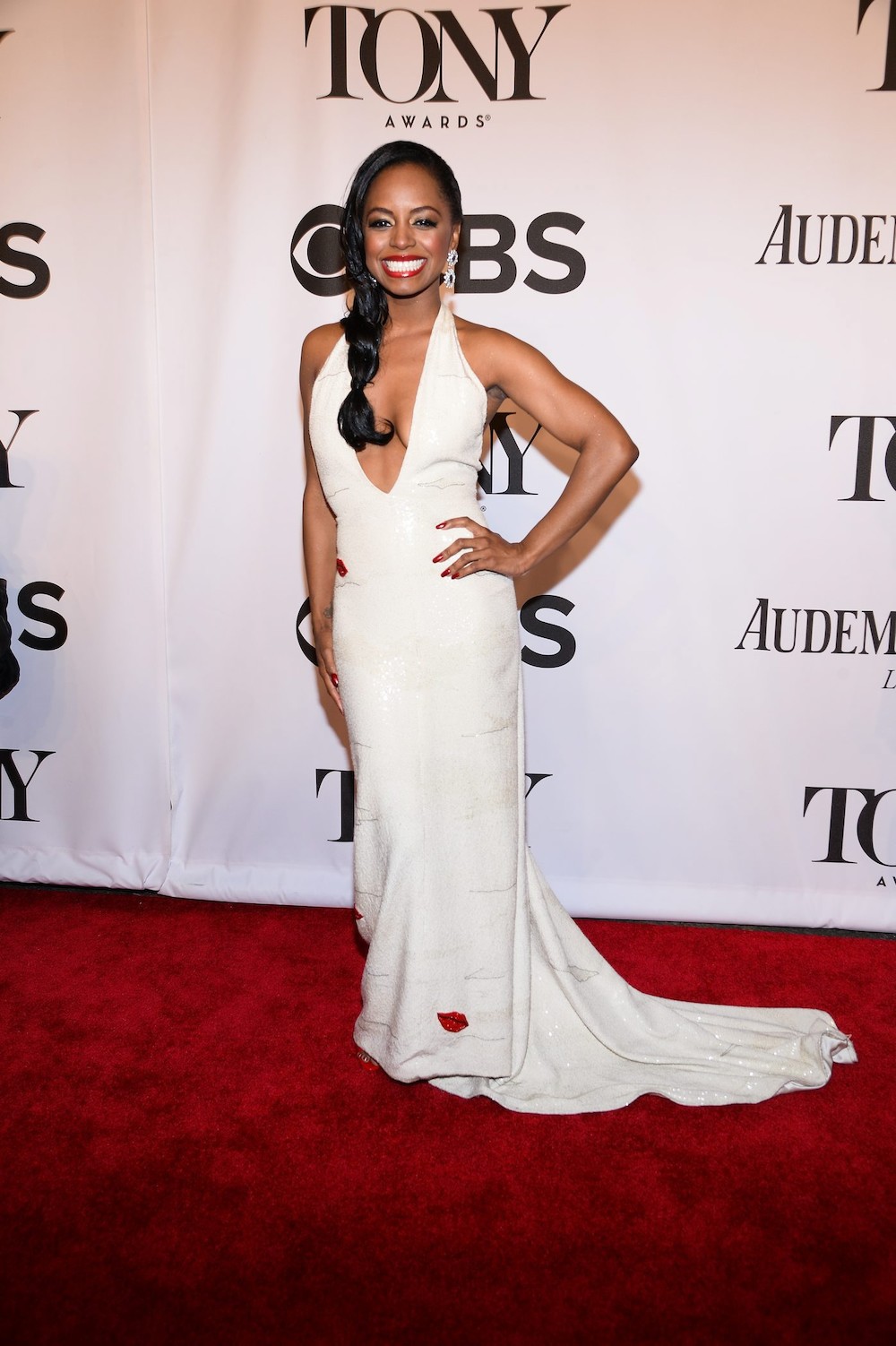 Krystal Joy Brown escogió un provocativo vestido blanco de corte de sirena con escote infinito. Además, el toque de color lo puso con esos labios rojos estampados en el vestido.