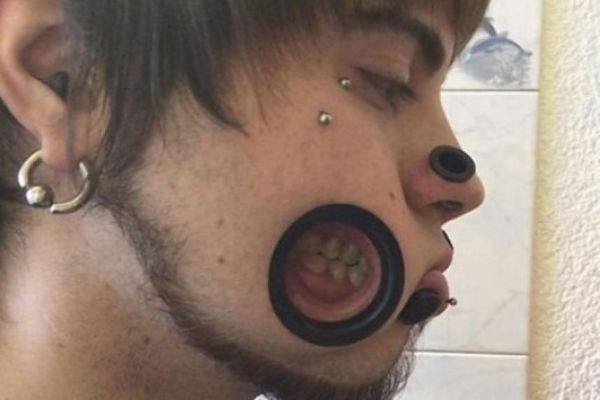 Los piercings son otra de los métodos más extendidos para adornar o modificar el aspecto. Eso sí, llevado al extremo resulta sorprendente o, incluso, dantesco. El alemán Joel Miggler, de poco más de 20 años ha llevado al extremo su afición por los Piercings. Tiene cerca de 30 piercings, 6 tatuajes, varios implantes y se hizo una bifurcación de la lengua. Quizá, lo más sorprendente son los agujeros que se hizo en las mejillas. Son enormes, de 36 centímetros. A través de ellos pueden verse sus dientes y su lengua dividida. Joel afirma que estos agujeros no afectan a su vida cotidiana pero a la hora de comer lo debe hacer en pequeños trozos