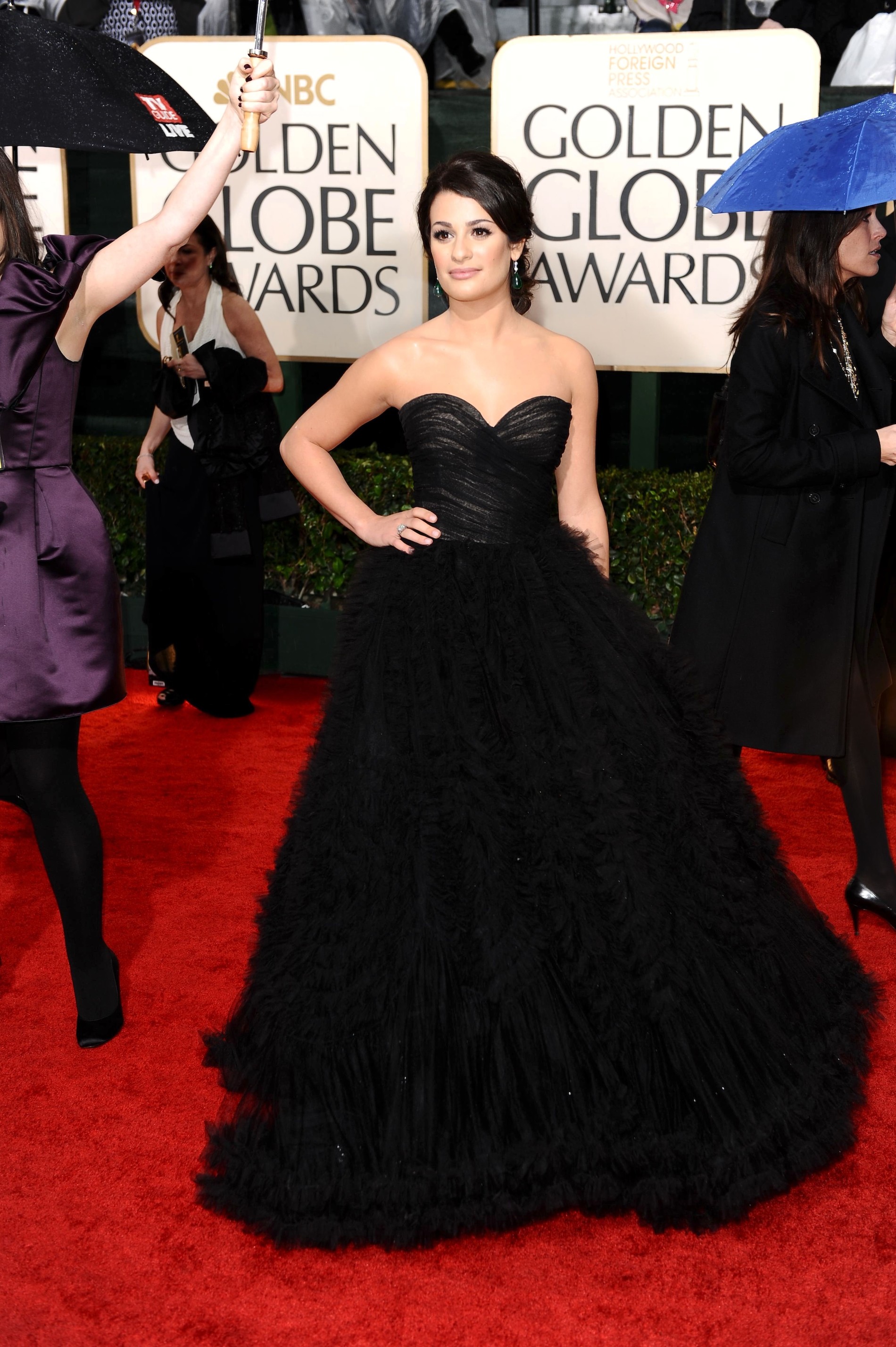 Lea Michele desfiló por la alfombra roja de los Globos de Oro de hace pocos años con este espectacular modelos de la Renta.